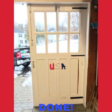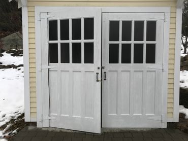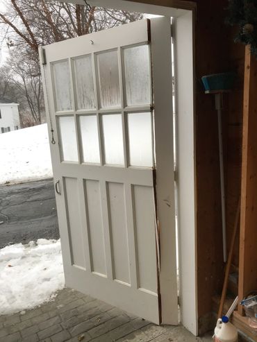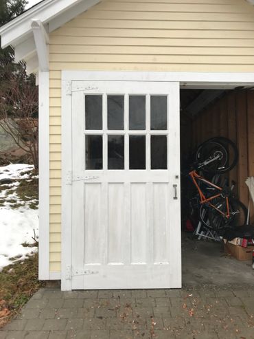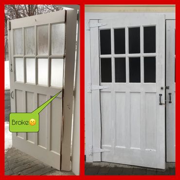 As a Wyoming boy, I have had my share of repairing and building barndoors. This was an extreme repair case. This antique door was caught by the wind and broke from top to bottom near the hinges. The goal was to salvage the door and add as minimal support brackets as possible. By using angle steel and simple mechanics, this hinged door was repaired with ZERO evidence of any damage on the outside.