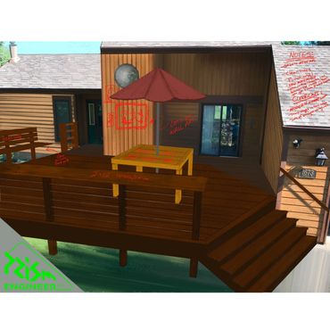 Sooner or later, many people have ideas for decks and their out door living spaces. This client from Wyoming had two frontdoor entryways and wanted to create one cohesive front entry point to their home. It only made sense to create a communal space to hangout considering this was the sunny side of the deck, which becomes very important come the cold winter months! With the clients wants, desires, and needs, Prism created this rendered drawing. Key features wanted were a minimally obstructive handrail, bench seating for a large wood table for the grandkids, access to the backyard, and wide stairs to welcome guests! While Prism won’t be able to perform the work due to cross state construction industry restrictions, any competent contractor can take this render and make my clients wishes come true. Prism colaborates with many contractors and is always available to answer questions that contractors or other services personal might have.