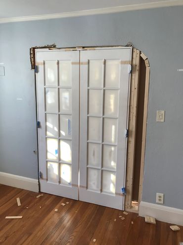 From a 10 Lite French door down to the period specific trim, Prism was able to mirror the homes 1930’s door style while creating a new enclosed office area. The unique twist about adding this French door was that the exsisting opening was 1 inch shorter then any pre-fabricated door that could be purchased. By strategically removing material off the bottom of the door, Prism was able to save the client thousands of dollars by not having to remove the exsisting header above the opening in this load bearing wall. Also, by installing the door to one side of the exsisting opening, this centered the doorway on the wall and reduced the amount of sheetrock work needed by only having to repair one side.