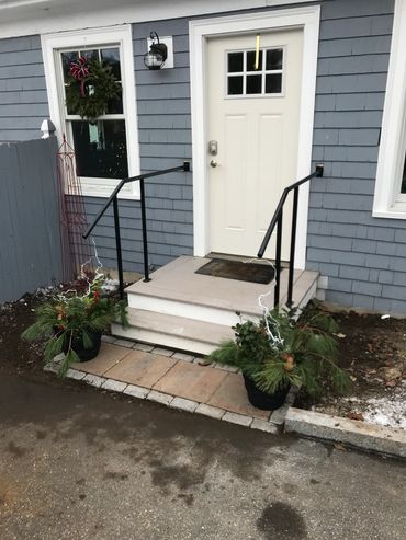 See before your build can apply to not just indoor atmospheres, but outdoor areas as well! Can you picture revamping your outdoor area? Let’s get it on paper so you can share your ideas! Maybe a terrace, a new hot tub with a lounge area? The client of this new homes addition wanted a simple entry with a place for their grandmother to sit in the sun and wait for visitors. She also wanted this make over done in stages. Prism custom built and welded two handrails. Before the snow flew, Prism was also able to install pavers and create a safe step transition for the upcoming winter.